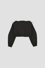 Short-cut windbreaker, modeled after a top. The fit of this item it’s easily adjustable thanks to the multiple bands placed internally in order to better adapt to each and every shape of the body of who wears it. The logo - printed in professional serigraphy - it’s placed on the sleeves.