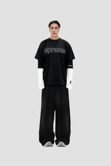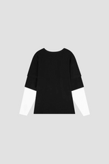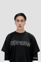 Long sleeved shirt made entirely of organic cotton. The sleeves are sectioned e made out of different levels, textures and colors. ORGVSM it's printed in Russian. The other logos are embroidered on the sleeves.